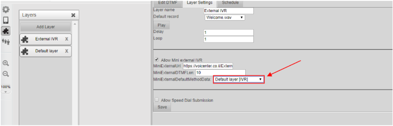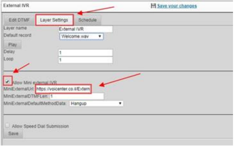 Under the "Layer settings" tab check "Allow mini external IVR" checkbox and configure